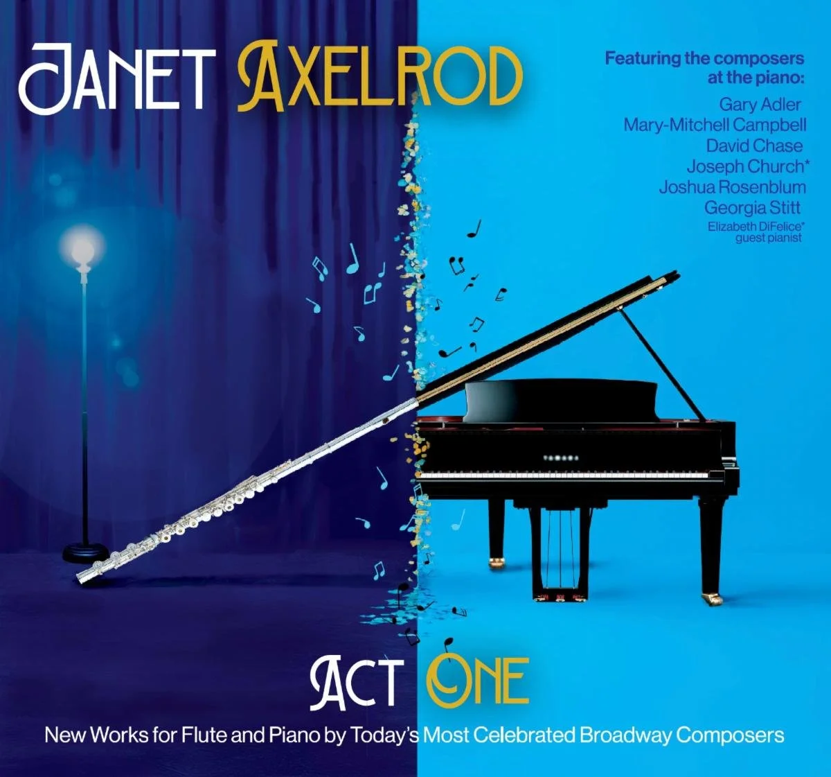 The esteemed flutist Janet Axelrod is joined by the piano for these world premiere recording of six works commissioned by Axelrod from Broadway’s most celebrated composers, arrangers and music directors.